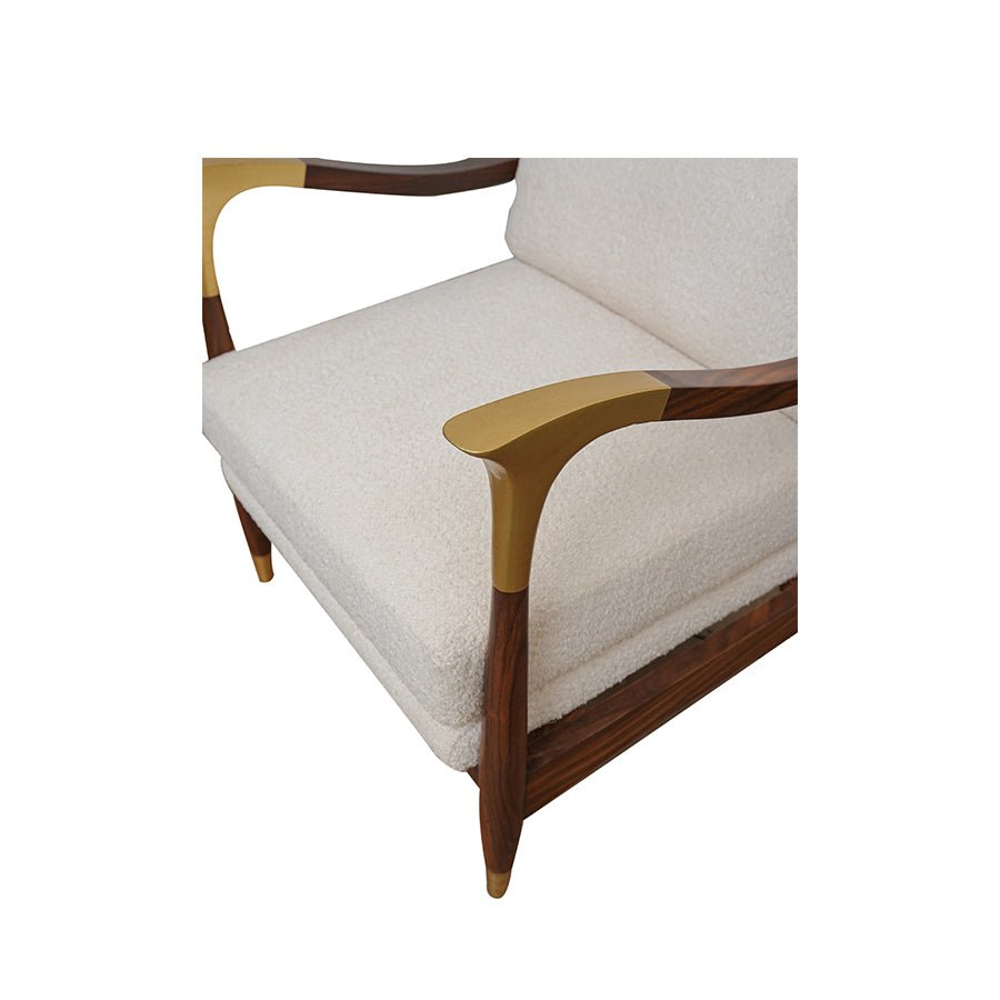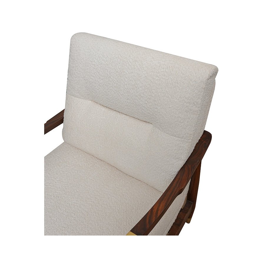 Bring timeless character and modern comfort to your home with the Avalon Mid-Century Chair with White Bouclé Upholstery and Rosewood Frame. Inspired by classic mid-century design, this elegant accent chair features a solid rosewood structure paired with soft white bouclé fabric, creating a refined balance of natural materials and contemporary texture.