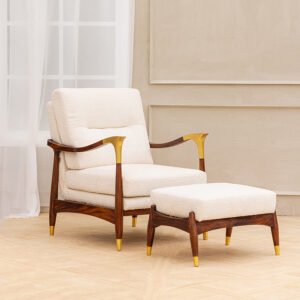 The chair is designed with plush foam cushioning, providing comfortable support for relaxing, reading, or entertaining guests. Its gently sculpted silhouette and clean lines reflect mid-century craftsmanship while blending seamlessly with modern, Scandinavian, and transitional interiors.