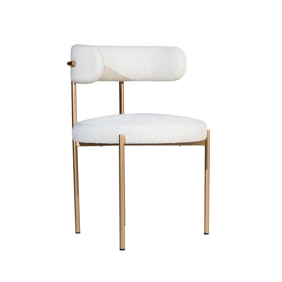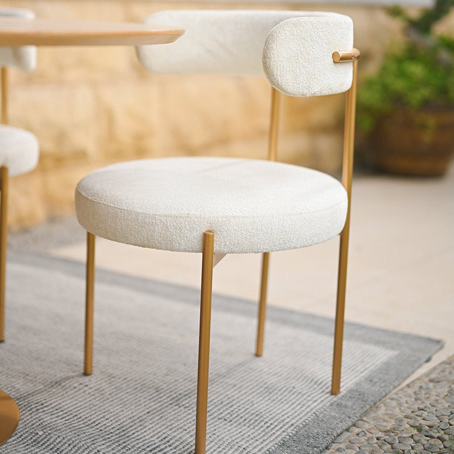 Chat with us, powered by LiveChat Italian-Inspired Bouclé Dining Chair with Curved Comfort - Shymofy