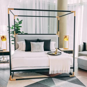 With its elegant finishes and structural design, the Grey Velvet Canopy Bed offers the perfect balance of luxury style, comfort, and long-lasting durability.
