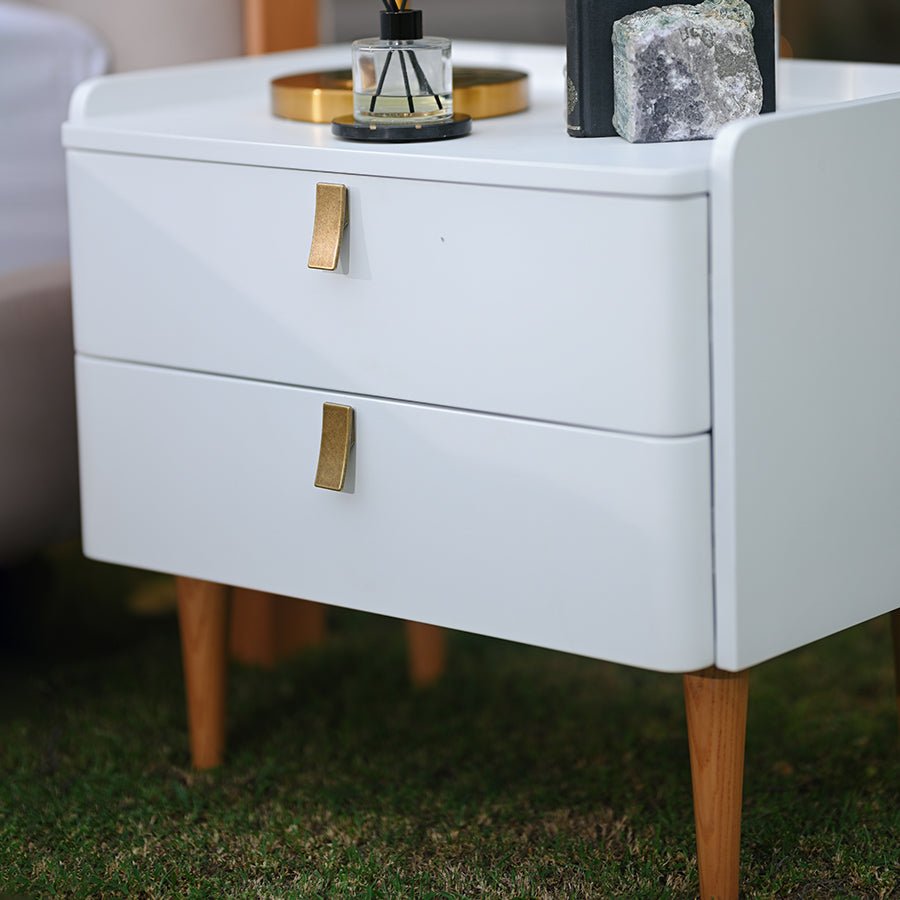 Crafted from durable MDF with a smooth white finish, the structure offers reliable stability and long-lasting performance. The polished brass frame and drawer handles add a subtle luxury touch that complements modern, transitional, and contemporary interior décor.