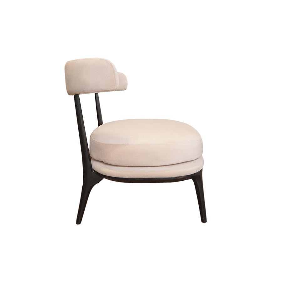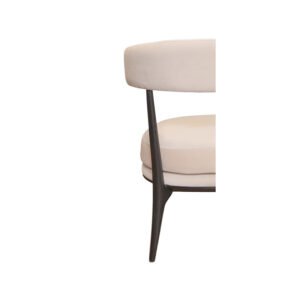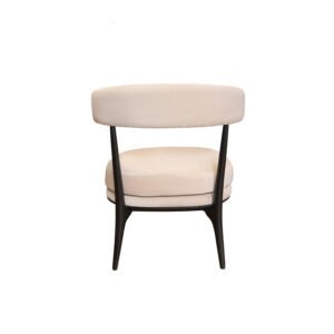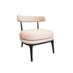 The chair features a gently curved ergonomic backrest that supports natural posture while promoting relaxed seating. Its sculptural form blends straight lines with soft curves, creating a visually striking piece that enhances both comfort and aesthetics.
