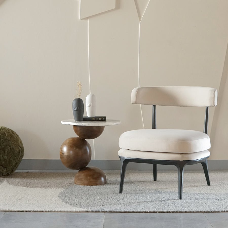 The Sculpted Oak Lounge Chair offers a balance of ergonomic comfort, modern design, and durable craftsmanship, making it a distinctive addition to stylish living spaces.